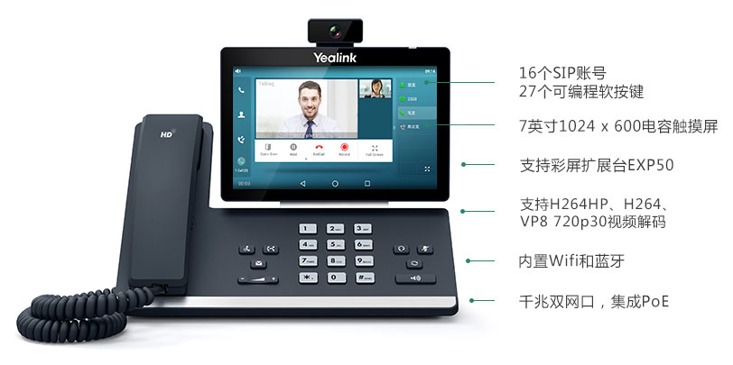 而億聯最新產品安卓視頻話機T58V,專為高端企業用戶設計,為用戶帶來高清、流暢的音視頻通話效果。同時,T58V基于安卓操作系統,可以為話機提供更智能的整體操作體驗,并支持第三方應用程序的安裝。