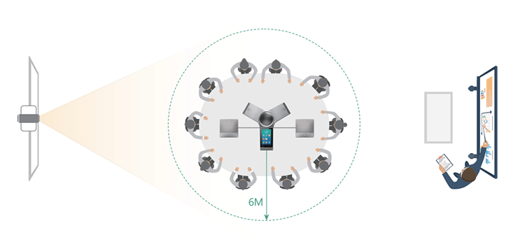 VC200采用UltraHD 4K超清鏡頭,支持4倍數(shù)碼變焦及電子云臺(tái),搭配103°超大水平視角,會(huì)議室全景視野盡收眼底。支持1080P30幀的視頻通話,最高可抗30%視頻丟包,即使會(huì)議室網(wǎng)絡(luò)情況不佳也可帶給您暢快視訊體驗(yàn)。