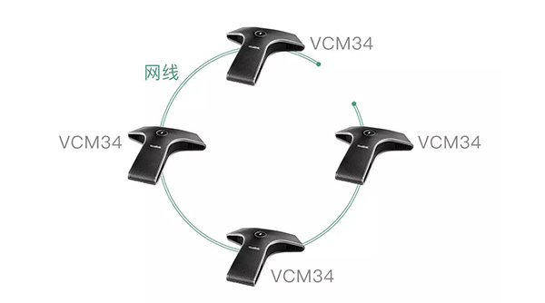 - 最多可級(jí)聯(lián)4臺(tái)VCM34,滿足多種規(guī)模會(huì)議室收音需求