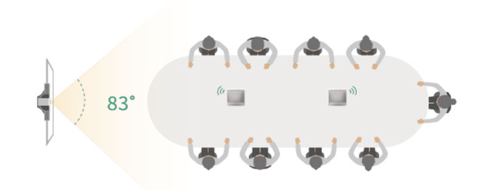 億聯VC500采用5倍光學變焦1080P/60幀帶云臺攝像機,支持83°大視角,畫面無畸變、不扭曲,會議室內人員盡收眼底,還原真實的現場場景,帶來身臨其境的視覺體驗。