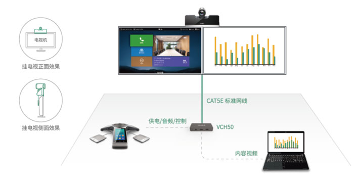 只需一根超五類標準網線即可連接電視區會議桌,現有普通會議室輕松升級為視頻會議室,易部署