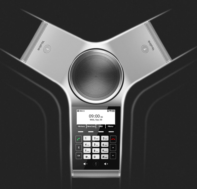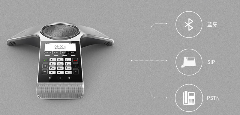 CP920支持三種模式混合會議,包括通過藍牙接入手機(手機來電、微信語音等)、直接接通PSTN話機及直接接通SIP話機進行通話,