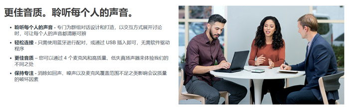 Polycom VoxBox 是一款新型超緊湊、高性能便攜式移動會議電話。現在,您可以隨時隨地使用更多設備體驗 Polycom 的超凡會議質量。VoxBox 將時尚的便攜式設計與藍牙無線配對和 USB 連接相結合,并且具備 Polycom 的高清語音質量。您會聽到更清晰的聲音,而您的同事也可以輕松聆聽或被聆聽。Polycom NoiseBlock 是一種降噪技術,可在您停止講話時自動將麥克風靜音。無論是在辦公室、擁擠的空間,還是在任何一個旅行目的地,都可讓您及時分享創意,高效溝通。