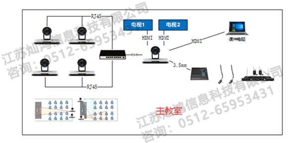 在教室部署一套視頻互動終端,學生在本地教室就可以遠程聽講,還可以在線和老師互動,回答問題。