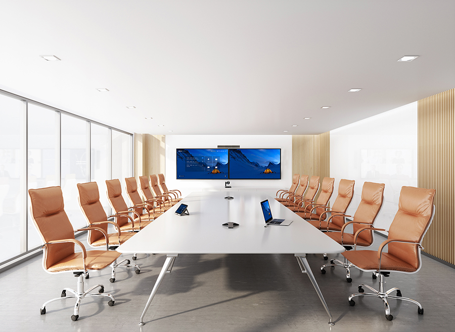 可根據會議室布局選擇最恰當的部署方案。一根 CAT5e 連接電視區和桌面區,完成數據傳輸及供電,無需額外的電源或延長線,簡化